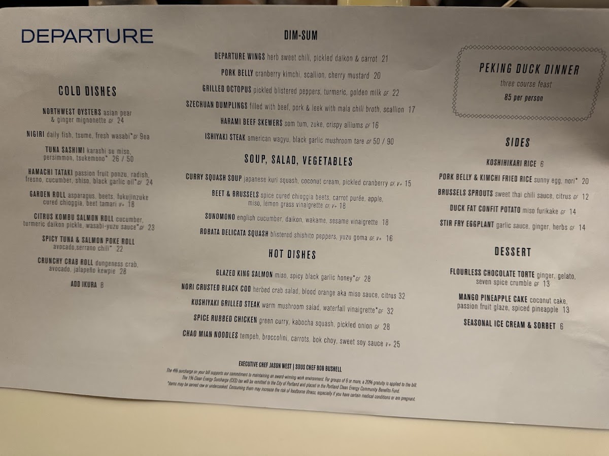 Introducing the menu at Departure Restaurant Lounge invites diners to embark on a culinary journey that marries Asian influences with local ingredients. Located on the stunning 15th floor in downtown Portland, this vibrant restaurant boasts breathtaking views alongside an innovative menu. Signature dishes such as the Binchotan Grilled Octopus and Wagyu Ishiyaki showcase both creativity and mastery, captivating the palate with rich flavors and exquisite presentation.